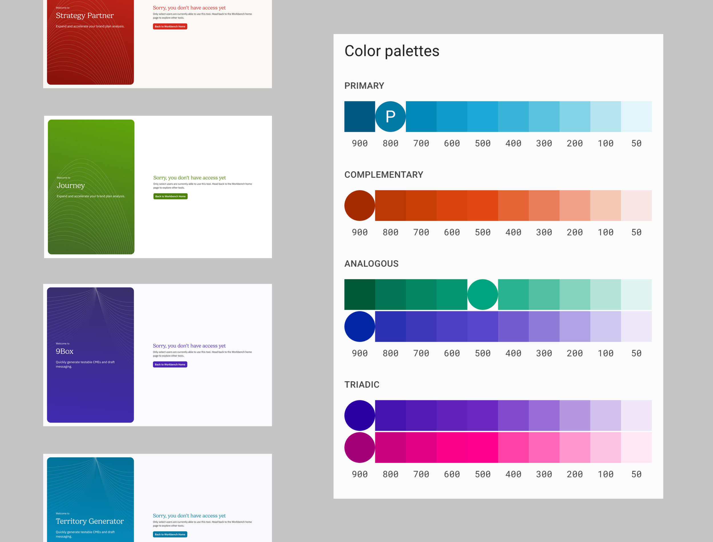 Explored and researched color schemes to create distinct, meaningful palettes for the two new products in the Workbench.